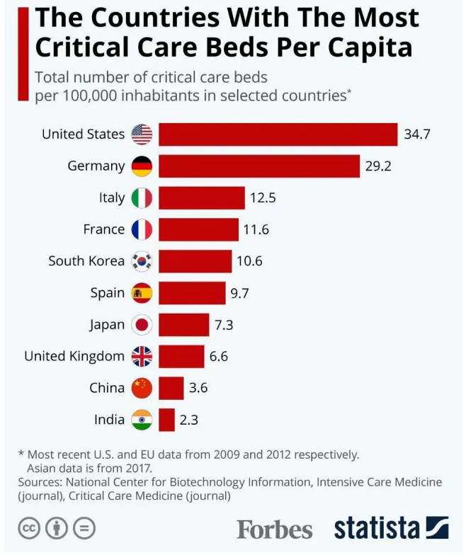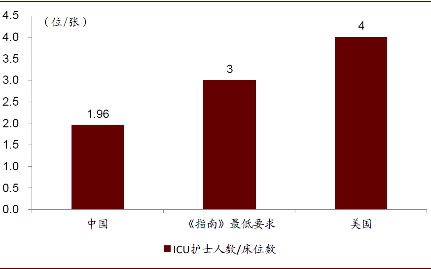 图表: 中国ICU护士人数与床位数比例和美国的差距